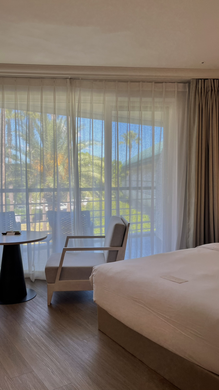 첫날 숙소는 샬롬 호텔. 늦은 시간에 도착했으니 그저 잠만 잘 수 있으면 된다고 생각했고, 야놀자에서 71,950원에 예약했다. 둘째 날부터는 숙소에 힘을 주었다. 그랜드 조선 제주, 야놀자로 2박에 592,607원. 침대의 탄성, 창밖으로 스미는 바닷바람, 그리고 수영장 물결이 다 좋았다. 바다보다 수영장이 더 좋았다고 말하면 제주가 삐칠까 싶었지만, 그래도 그곳에서 보낸 낮과 밤은 여행의 절정이었다.