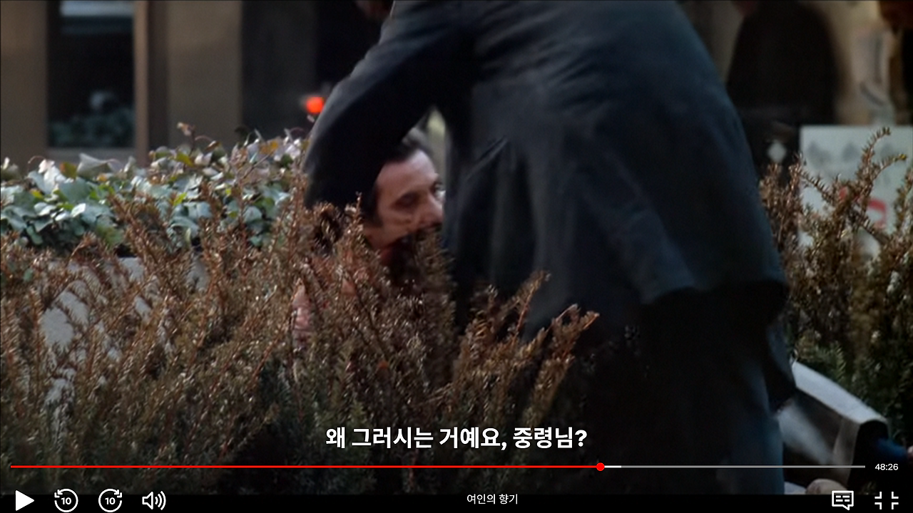 사실 이 영화와의 만남은 우연한 '낚임'에서 시작됐다. 예전 영화 소개 프로그램에서 본 탱고 신(Scene)때문이다. 알 파치노와 함께 춤을 추던 여인(도나)이 너무나 아름다워 영화를 찾아보게 됐는데, 막상 뚜껑을 열어보니 내용은 예상과 전혀 달랐다. 하지만 그 감동은 '미끼에 낚여 다행'이라는 생각이 들 정도로 강렬했다.