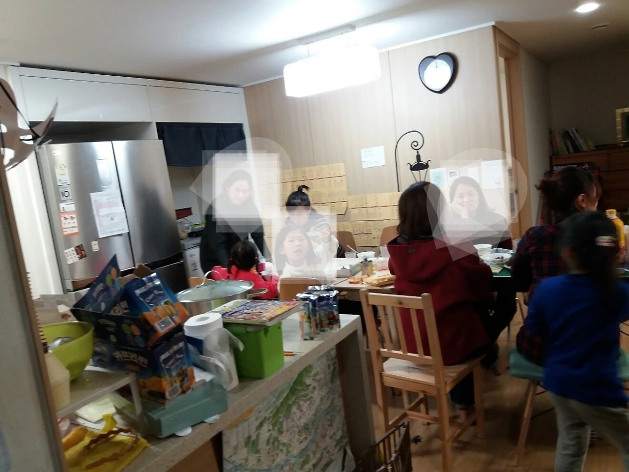 아이들 덕에 큰 집으로 이사하게 되어 막내 유치원 엄마들과 아이들 그들의 형제들을 초대하니... 25명이 넘었다. 1층 같은 필로티여서 각방에 아이들이 실컷 놀고 거실에 식탁과 책상 1개. 당구대 연결. 아이들은 교자상.