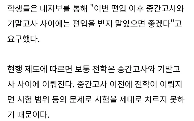 <시험 후 내신 등급 정해지기 전에 전학생을 받지 말라는 내용의 대자보>