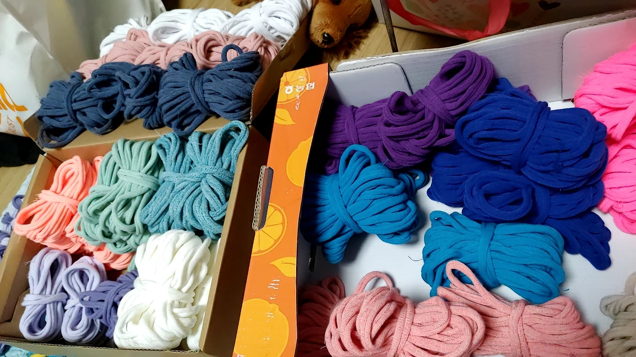 예비 초등 6학년 막내의 방학 엿보기. | 막내는 방학에 자기만의 계획이 있어요. 놀고 배우고 즐기느라 바빠요. 양말목으로 만든 강아지 방석. 아이가 양말목 2킬로를 주문해 달라고 했어요. 다양