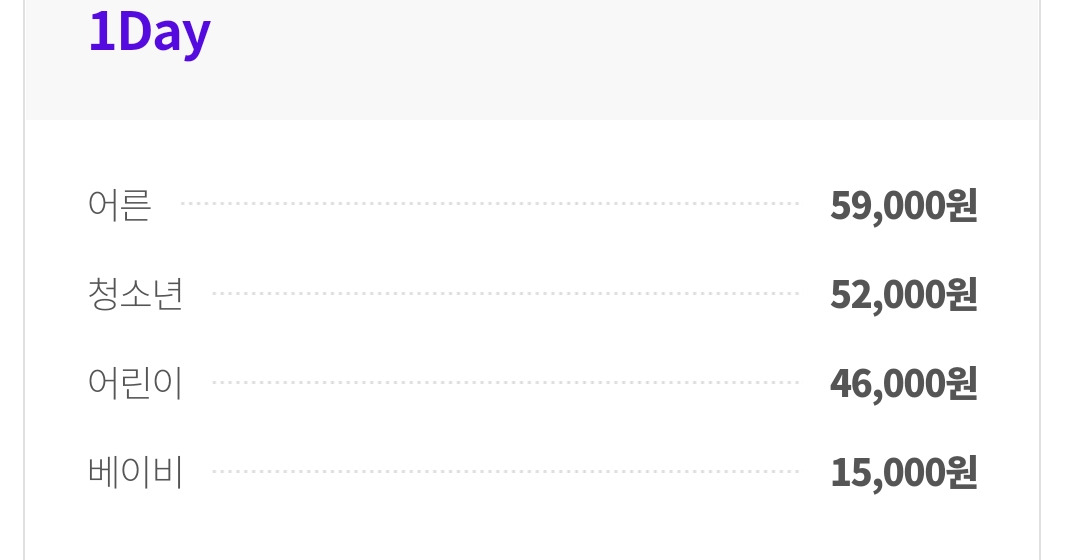 구입해야 한다. 1인당 1매만 사용 가능. 어린이라면 46000원(입장권, 자유이용권) + 49000원(5가지는 줄 서지 않고 바로 탑승) = 총비용 9만 원 5000원.