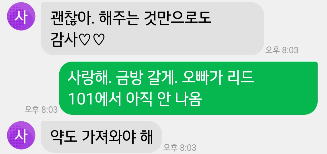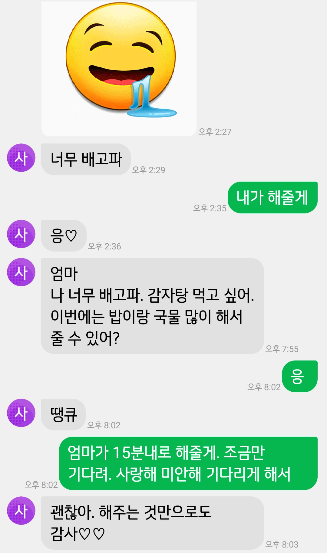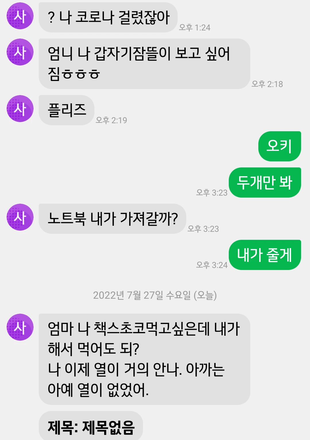 코로나 걸린 초등 딸과의 문자 대화