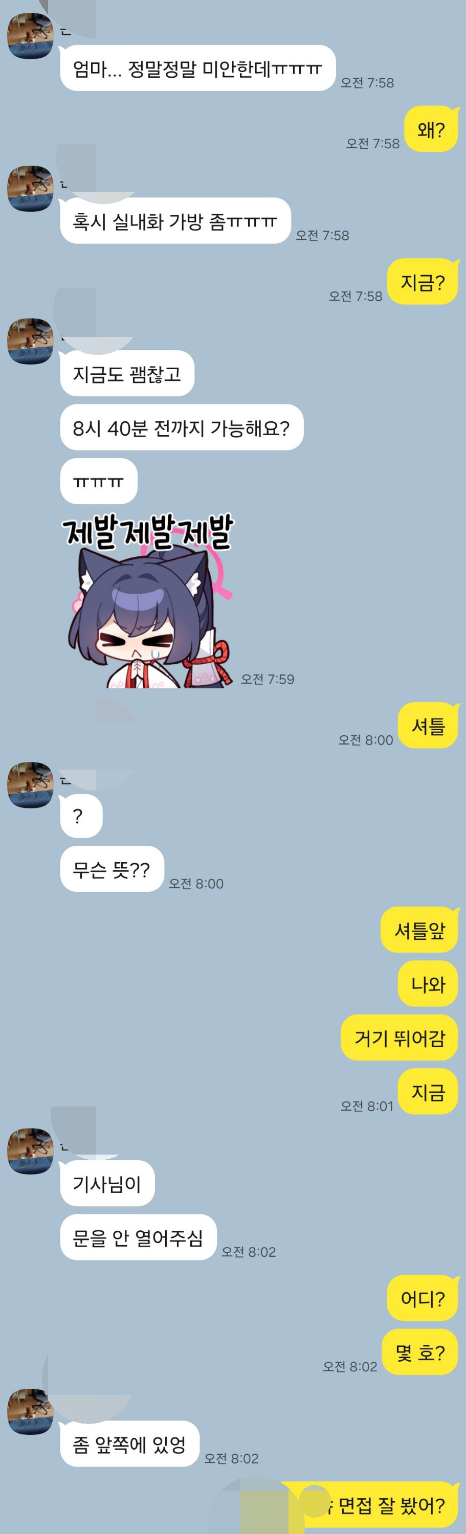 몇 호인지 묻고 전달 완료!