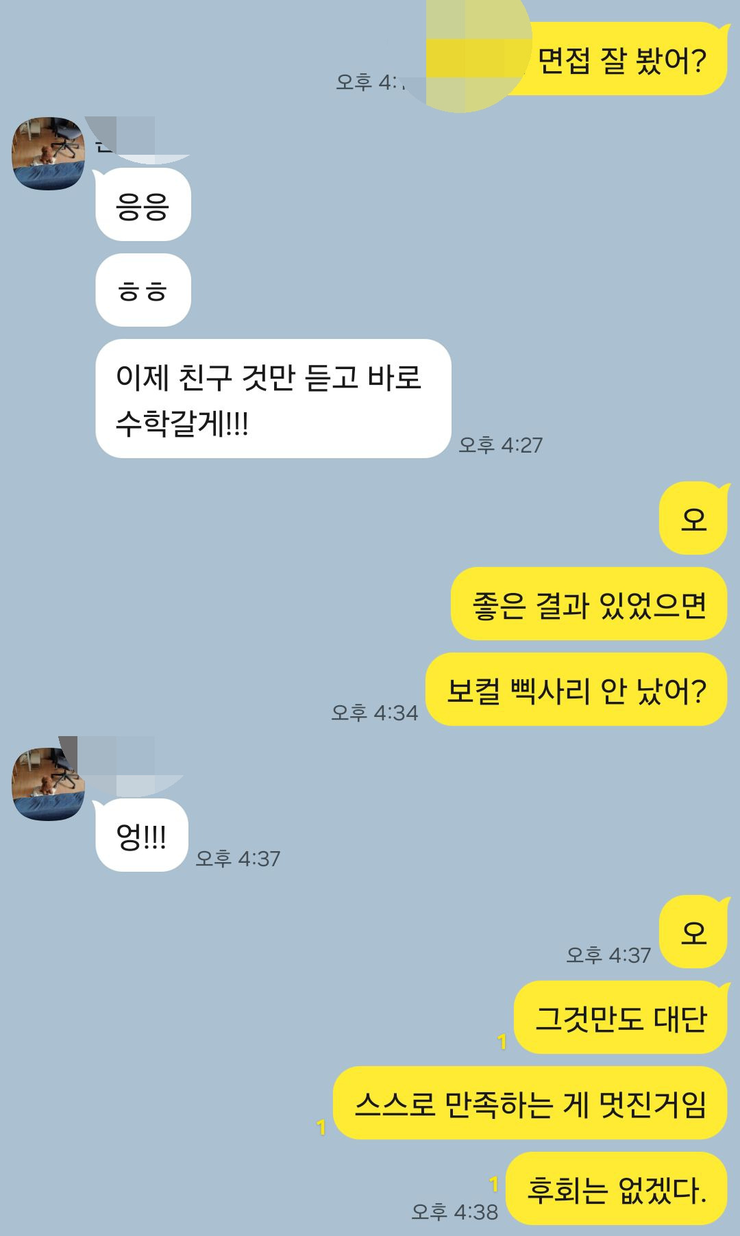 떨어져도 후회가 없을 만큼 노력을 했기에 미련은 없을 것 같았다. 아쉽긴 하겠지만...