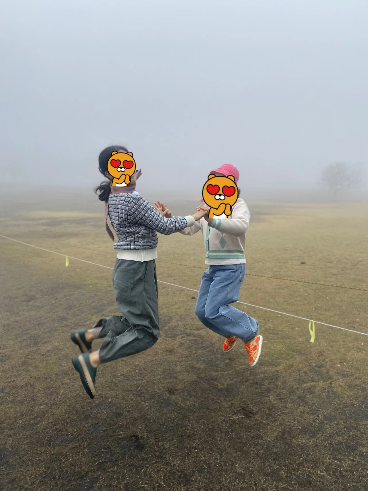 유후다케에서 안갯속 가족사진 찍기 - 웃다가 눈물 나고 난리였음.