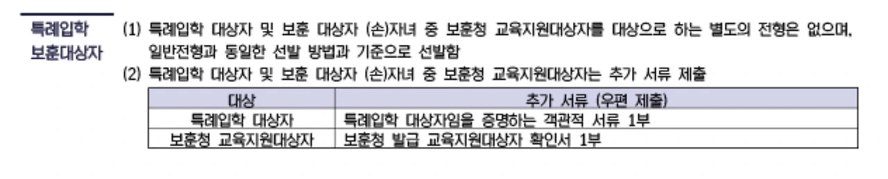먼저 입학요강을 숙독했다. 내가 어떤 전형에 해당하는지를 파악해야한다. 혹시나 특례입시 전형이 있는지 살펴봤지만, 서류제출 안내만 있을뿐 모든 평가전형은 일반전형에 해당됬다. 특별 전형은 횡성인재전형, 보훈전형, 특례전형으로 기록만 되어있을뿐이다.