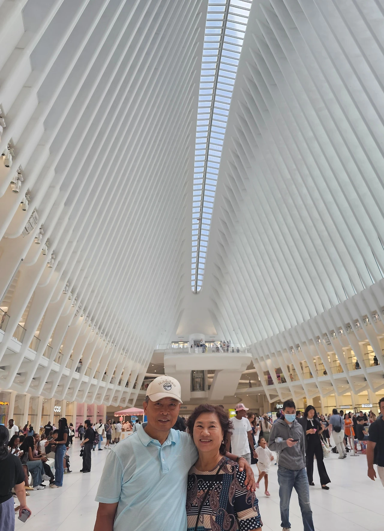 월드 트레이드 센터 역으로 가는 도중, 오큘러스 몰 (Oculus Plaza)로 들어서니 시원한 공기가 바깥의 뜨거운 날씨에 데워진 우리를 식혀준다. 갑자기 내리는 비로 인해 장 보기는 생략하고 딸 집으로 바로 향한다.
