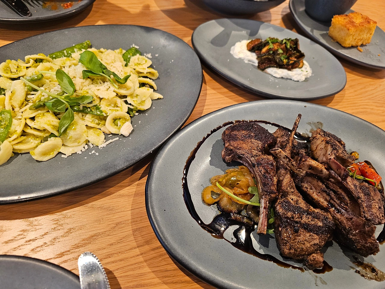 예약해 둔 사내 식당, 'Share'에서 점심 식사를 한다. 세트 메뉴가 제공되었는데, 오늘의 메인 메뉴는 양고기 요리다.