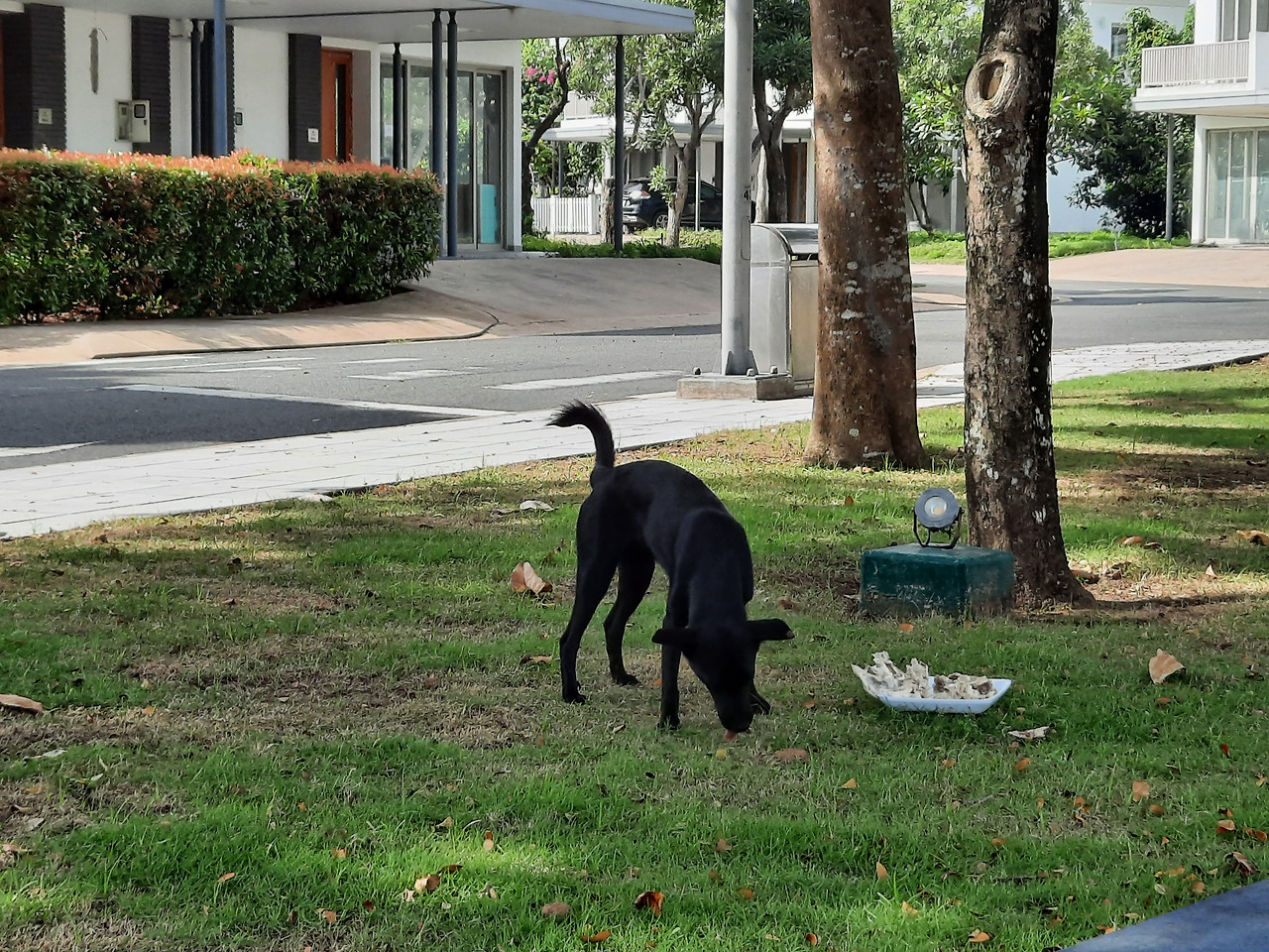 우리 단지 밖 마을에 흔히 돌아다니는 종류의 개였다. 아마도 그곳에서 수 Km 떨어진 이곳으로 어쩌다가 오게 된 것 같았다. 집으로 돌아가 음식을 가지고 그 개를 만났던 곳으로 가 보았다. 없었다.