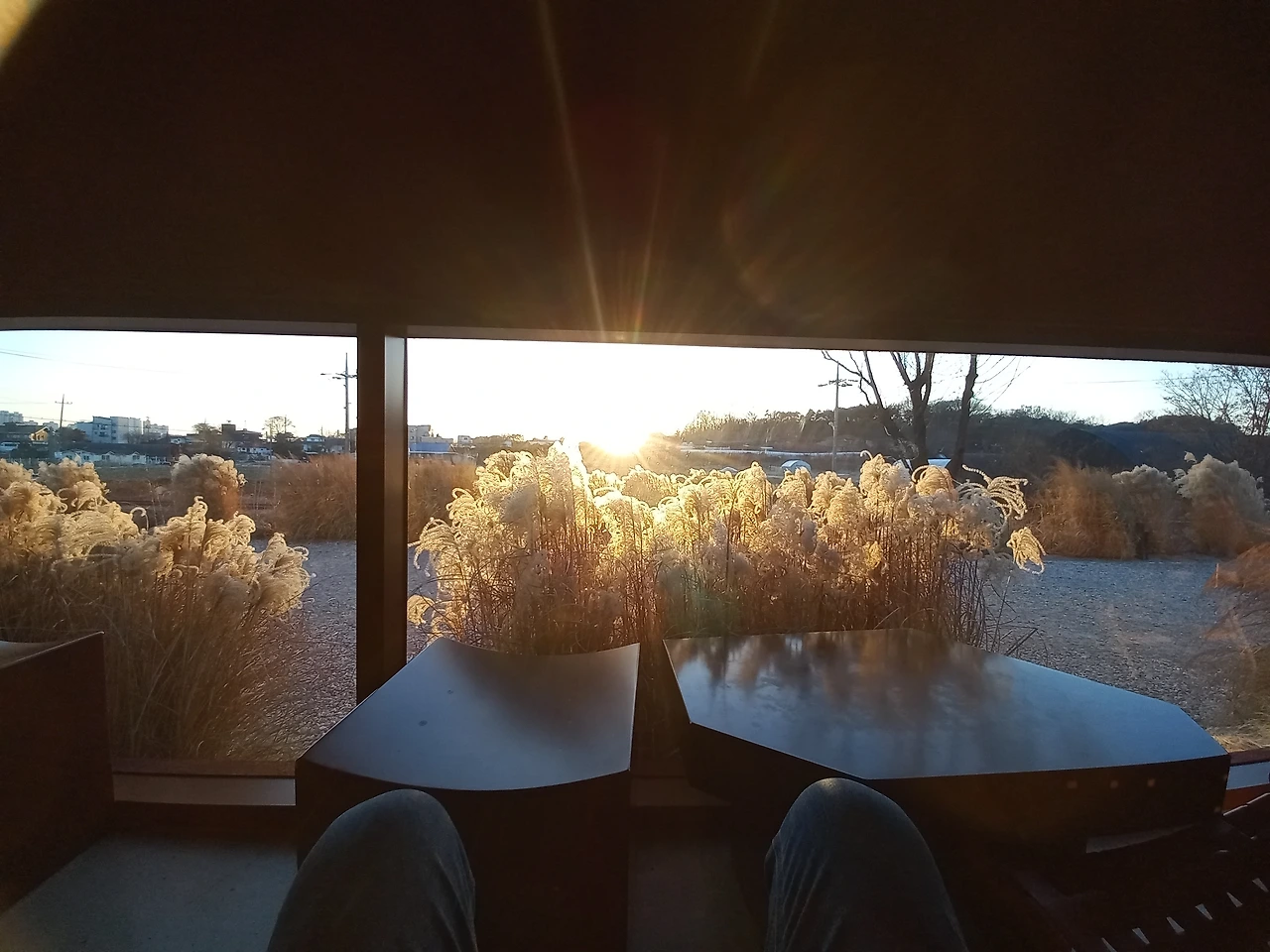 밖으로 나가니. 주변은 칠흑 같은 어둠에 둘러싸였고 현관에 있는 조명이 길을 밝히고 있었다. 마을버스에서 내렸을 때는 몰랐는데, 버스정류장이 보이지 않는다. 순간 멘붕이 왔다. 그래서 직원한테 버스 타는 장소를 물어보니, 좌회전해서 사거리까지 쭉 내려가 길 건너지 말고 버스를 타야 한다고 친절하게 가르쳐주었다. 일단 내려가서 사거리를 찾긴 했는데 여전히 정류소가 보이지 않는다. 아무리 돌아다녀도 어둠 속에 보이는 것은 자동차 헤드라이트 불빛뿐이었다. '아무리 시골이라도 9시쯤에는 차가 끊길 것 같지는 않았지만, 30분 정도 기다리다 보니 슬슬 걱정이 밀려오게 됐다. 그러다 버스로 보이는 물체를 발견하고 손을 흔드니, 문이 열렸다. 여기가 정류장이냐고 기사에게 물어보니, 지나가다가 사람이 보여서 문을 열어주었다고 말했다. 그런데 의자에 앉으려는 찰나, '쿵'하고 소리가 나며, 바퀴가 기찻길에 빠지면서, 차가 한쪽으로 기울어졌다. 맞은편에서 들어오던 버스의 기사가 이를 보고, 바퀴가 빠져나올 수 있도록 조치를 해주어 다행히 지하철 역까지 갈 수 있었다.
