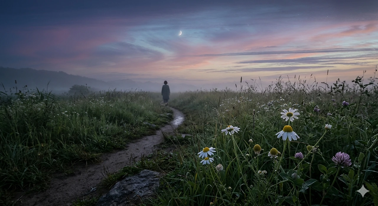 늘, 한 박자 놓친다연일 連日 뿌린 빗줄기로청소 淸消된 세상을눈치챈 바람이 하늘에 알리니조화 調和 이룬 달과 구름이희망 希望을 노래하는 별이잔치를 벌이는 새벽녘의 풍경 風景을 만들고이슬이 풀숲에 화답 和答한다.계절 季節은 어김없이안달하는 마음에숙성 熟成의 시간을 깨우친다.시작노트내 살기 바빠쳐다보지 못한 꽃들에고맙다고 인사한다더 이상 한 박자 놓치기 싫어서.