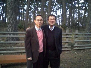 하얀 눈이 세상을 덮어버린 인천 용화사절 앞에 친구가 먼저 도착한