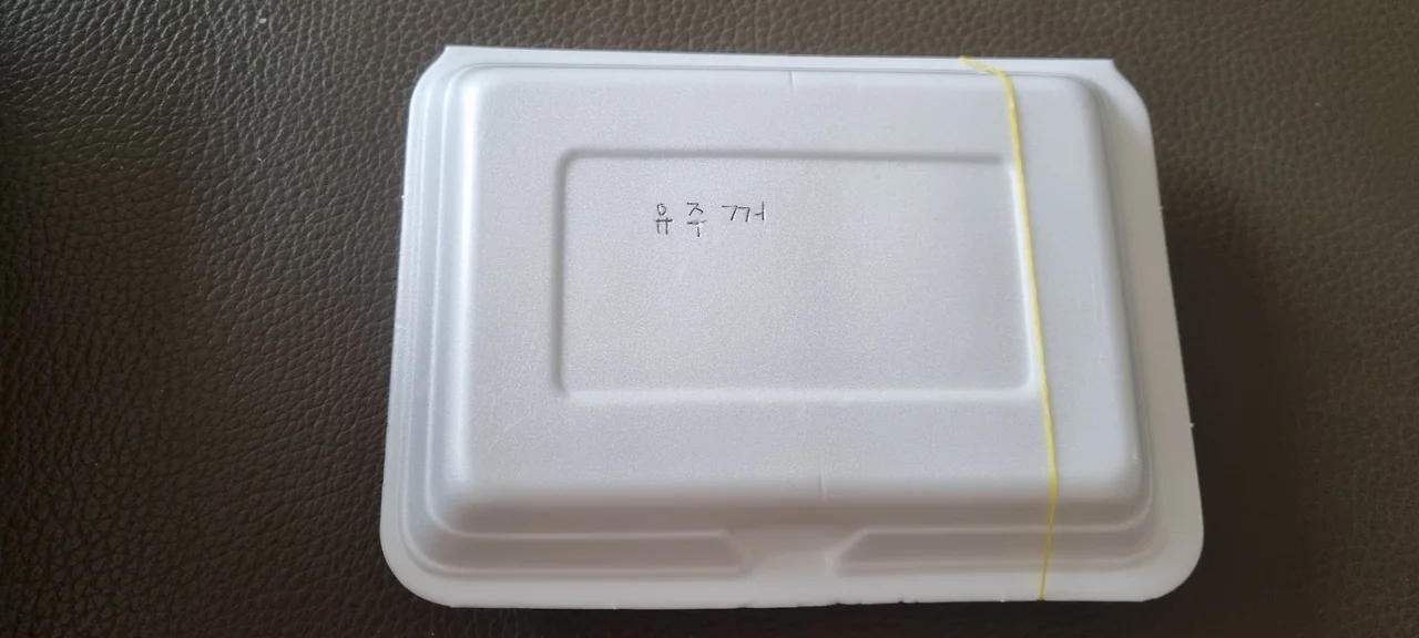 봉지에 뭔가를 쓴다.