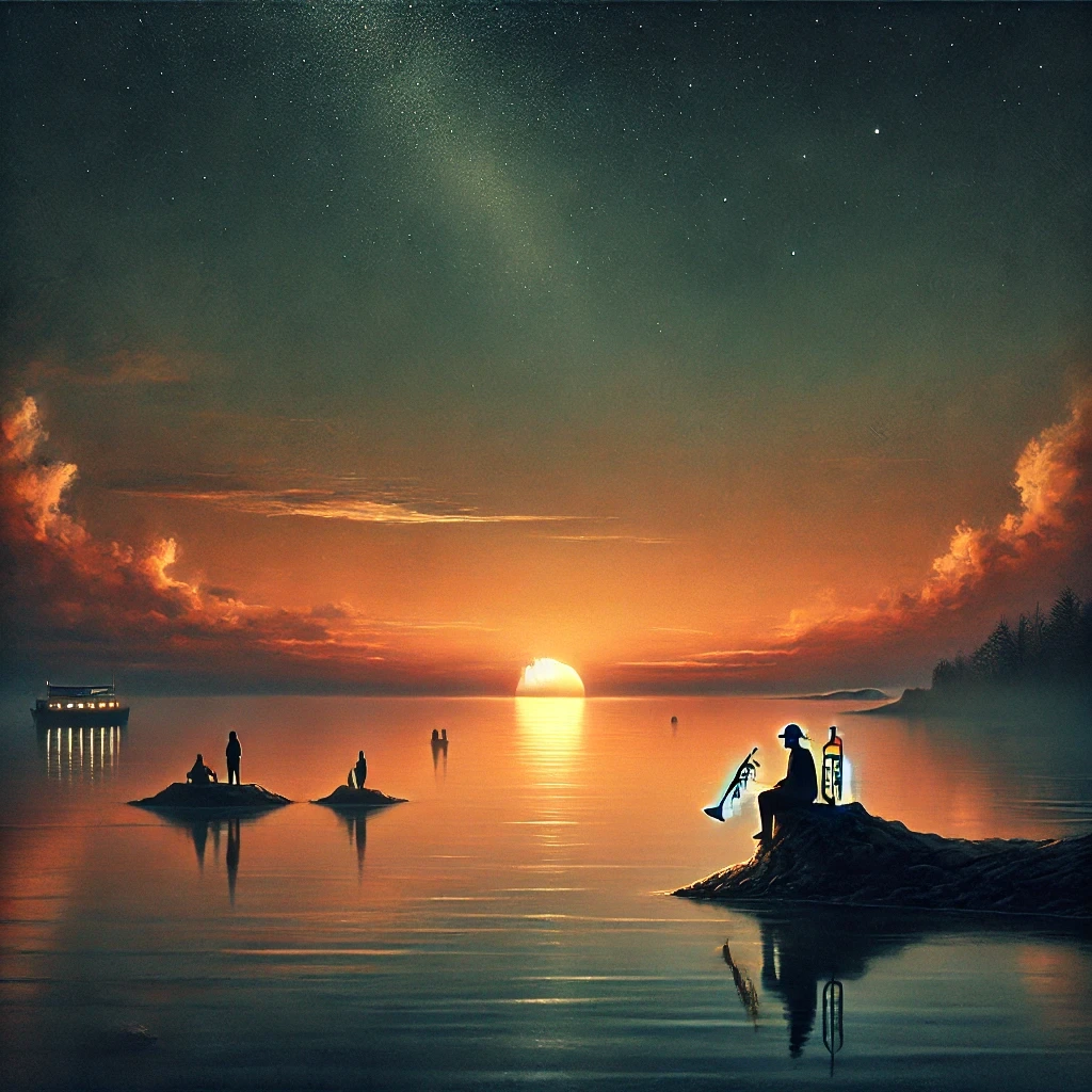 일출日出의 뜨거운 그 시절 낭만 속에서 일몰日沒의 서서히 식어가는 고독 속에서 마지막 분기 分期를 치닫는 기울어진 공존 共存의 틈새 속에서도 변하지 않는 하늘이 그리워 폭죽을 터트리고 밤하늘 바람에 실린 트럼펫 소리가 울려 퍼지고 오늘을 기억하자고 속삭이는 연인들의 카페가 덧칠되는 그림자지만 쏟아져 내리는 별빛마저 마음 한 편의 슬픔에는 눈물을 막지 못한다.