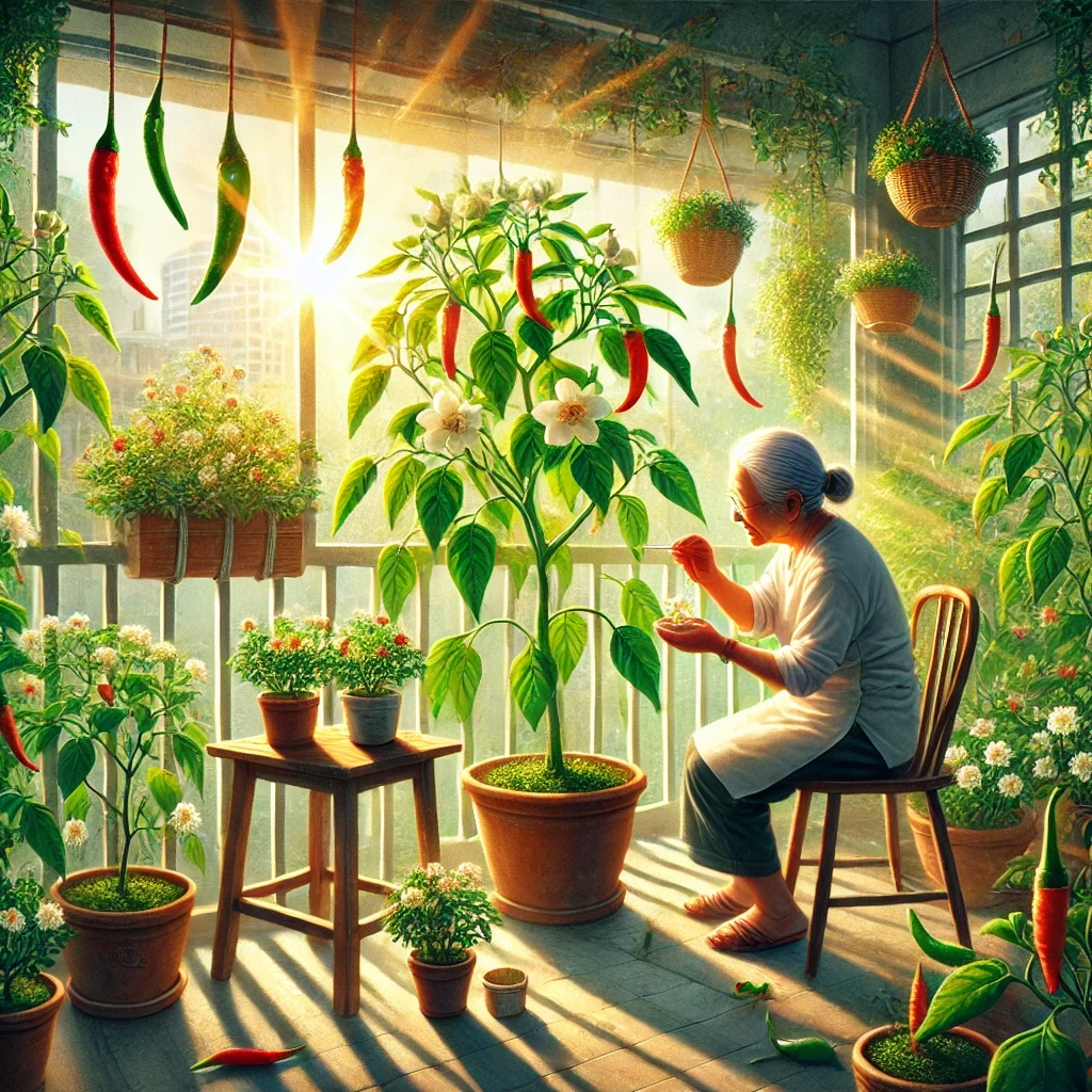 고추 모종의 성장을 살펴보다가
