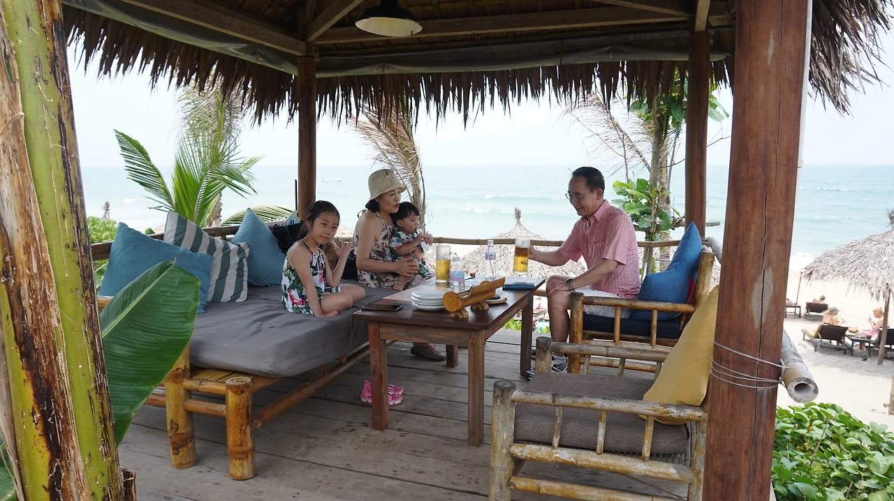 오전 호텔 풀장에서 가볍게 몸을 풀고 난 후 안방비치로 향했다 다낭 미케해변의 연장선상으로 모래밭이 풍부하고 한국인이 드문 서양인들이 오히려 조용하고 여유로운 휴식을 즐기는 마니아층이 많아 가족들이 휴양을 즐기는 데는 안성맞춤이다 손녀의 손을 잡고 해변의 파도타기를 즐기다 안경이 달아났다고 생각했다. 20여분 동안 안경을 찾다 포기하고 원두막 파라솔로 가보니 핸드폰과 시계, 안경까지 가지런히 정리되어 있지 않은가! 망각이 심해지면 치매가 되지 않는가? 정신줄을 꽁꽁 묶어 놓아야겠다.