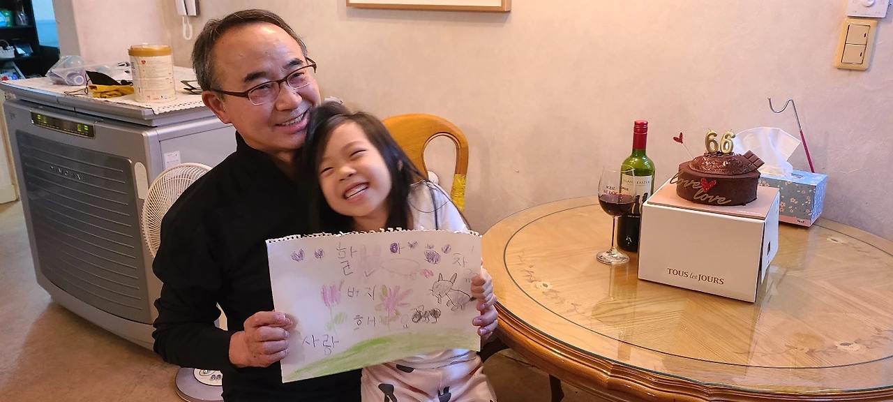 주말이 되면 어떤 모습으로 놀고 있나 궁금해지는 마음에 탁구 회원들과의 담소를 마치고 집으로 돌아오는 발걸음이 빨라지는데 어김없이 오늘도 함박눈을 뚫고 할머니와 친구처럼 반말하며 놀고 있는 유주가 벨의 비밀번호를 누르는 순간, 모든 동작을 일시 정지한 채 귀를 쫑긋하는 적막이 행복의 순간이다. 문이 열리면 득달같이 달려와 할아버지! 하며 두 팔을 하늘로 올리면, 안아서 두세 번 천장이 닿을 만큼 기쁨을 표현하는 인사법이 아직까지 나의 특권이다.