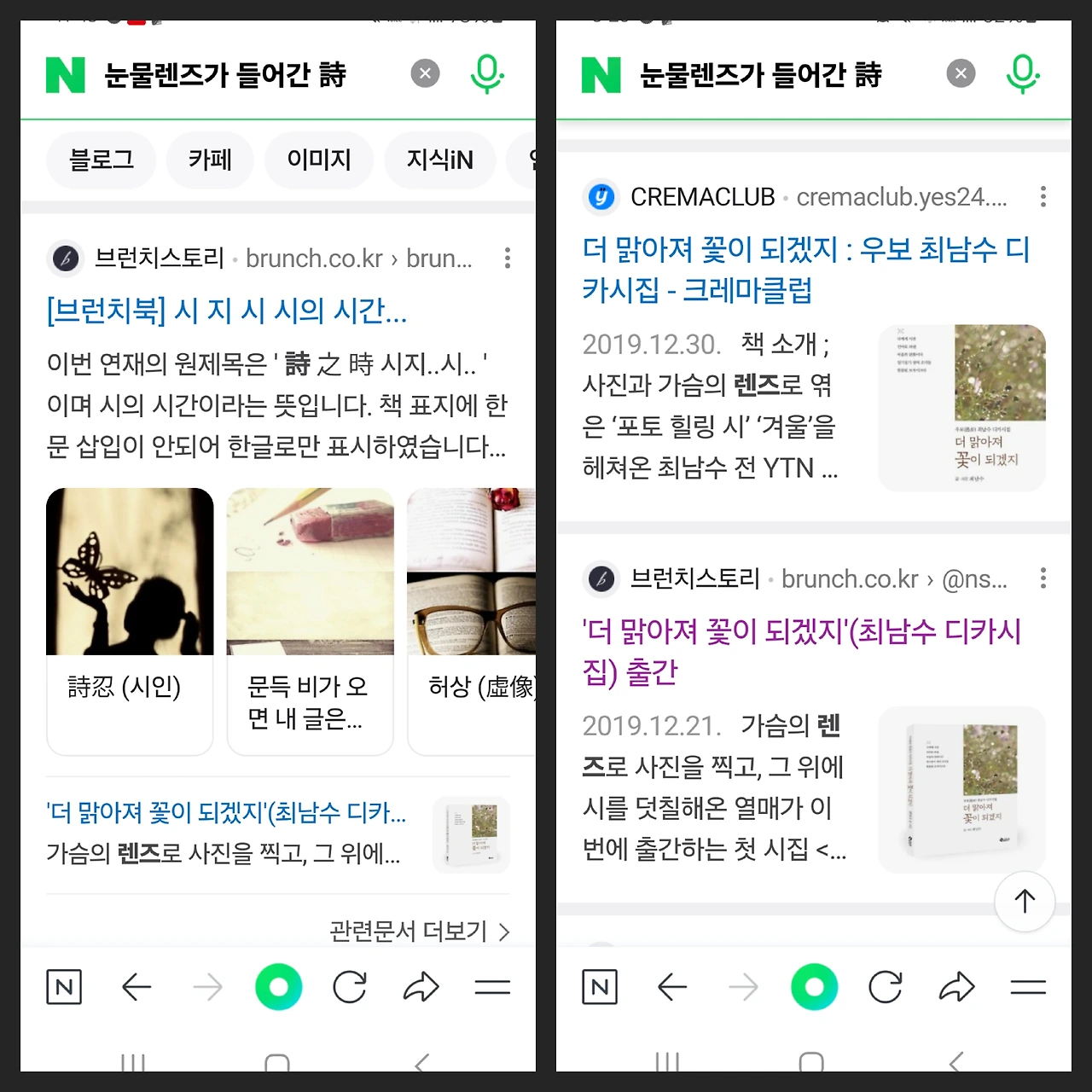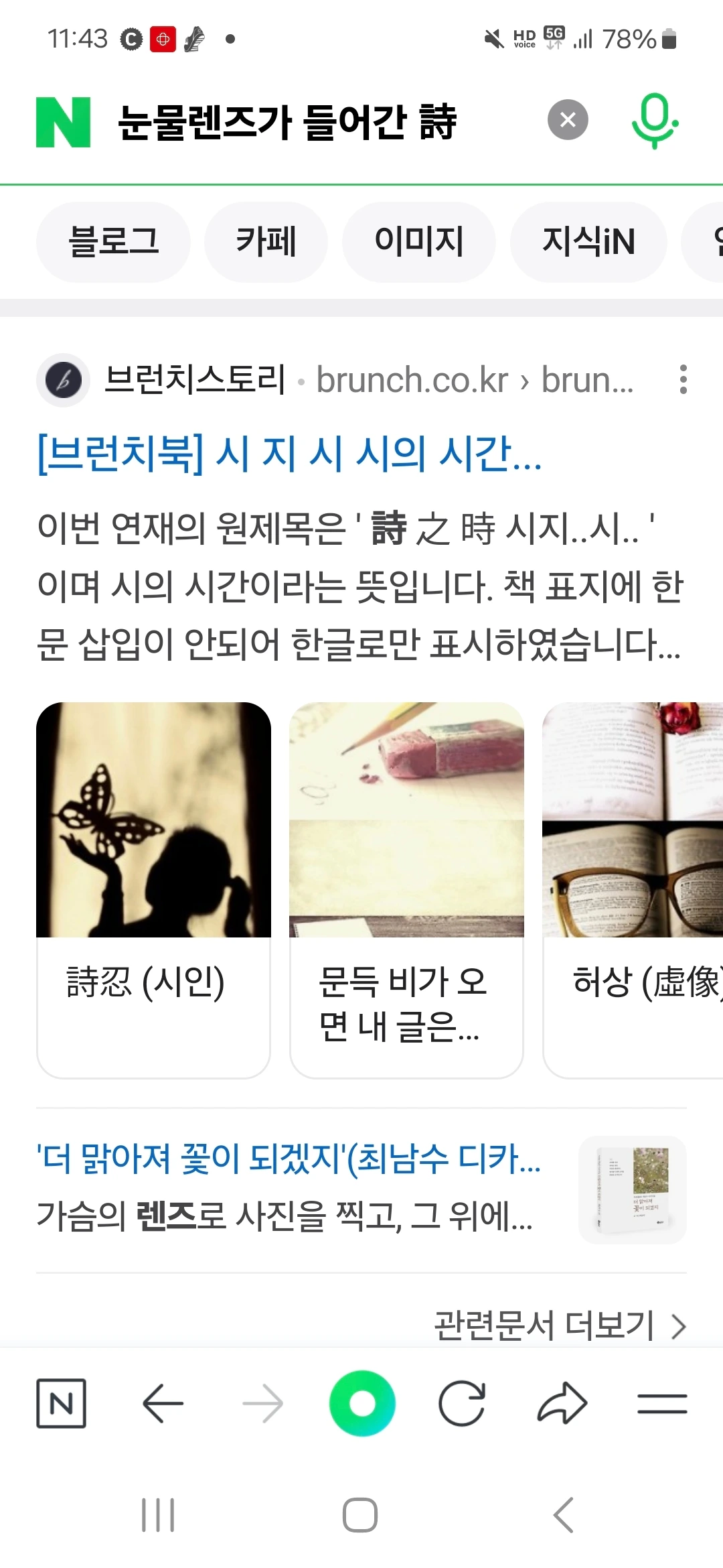 네이버에 ' 눈물렌즈가 들어간 詩 ' 를 검색하면