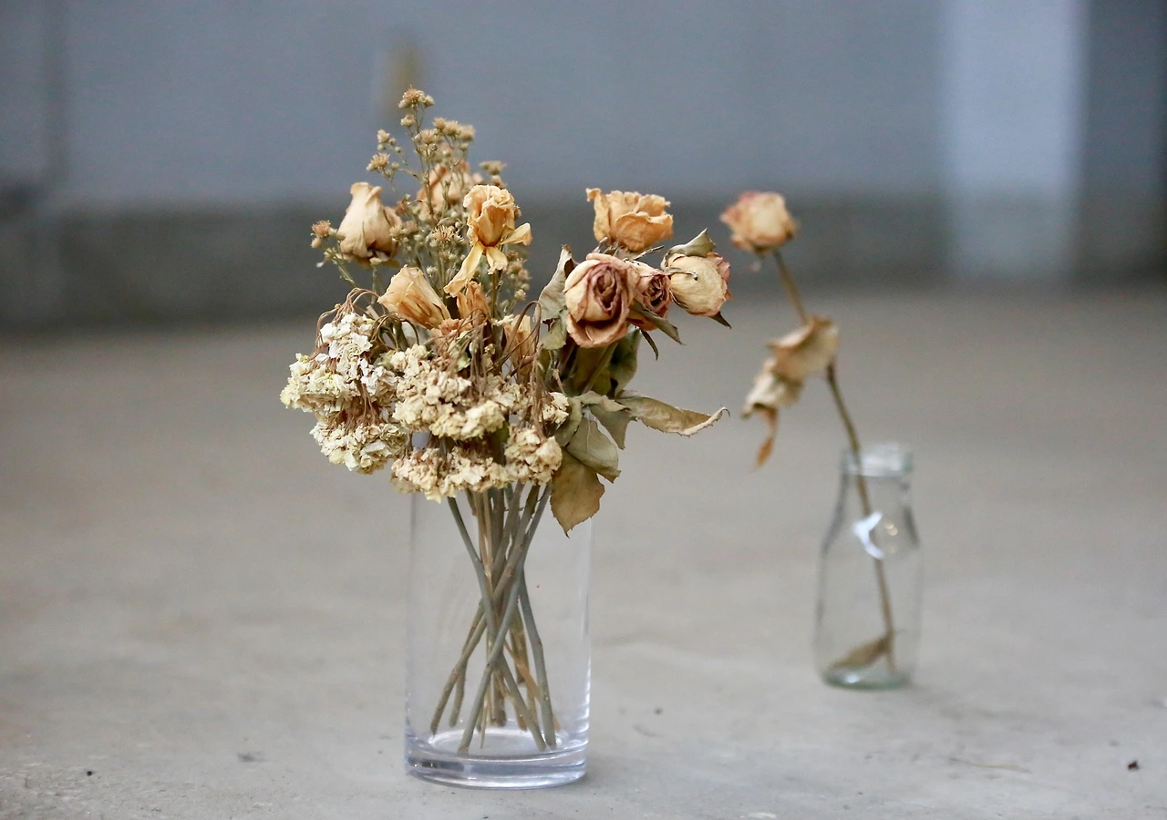 벽에 걸려있는 드라이 플라워, 외부의 자극에 가녀린 소리를 낸다