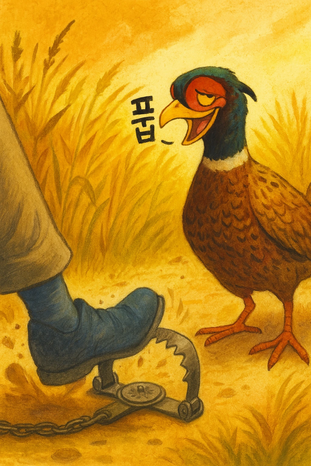 그 꿩은 분명히 ‘비웃는 눈빛’을 하고 있었다.