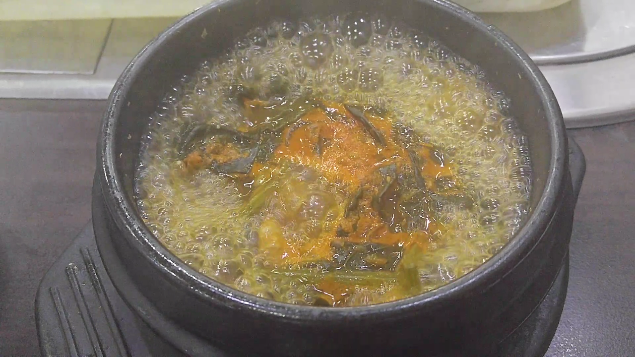 숟가락으로 국에 들어간 건더기(시금치며 건새우)를 건져내며 뜨거운 놈의 것을 그대로 입 속으로 입 속으로.
