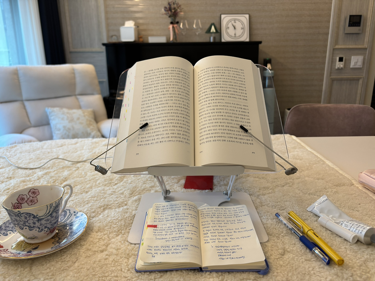 물리적으로 내가 집중할 수 있는 공간을 먼저 민들었다. 우리집 식탁에 내가 좋아하는 1인용 쇼파를 두고 책상에 따뜻한 담요를 깔고 보면대를 설치했다. 물리적인 공간을 만들고 난 다음에는 그 속에 정신적인 공간을 만들어야한다.