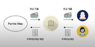 그래서 정부는 Fannie Mae라는 기관을 세워, 만일 채무자가 돈을 못 갚으면 정부가 대신 갚아주겠다며 은행의 리스크를 대신 부담하게 되었습니다. 즉 다시 말해서 돈을 갚으면 돈을 받을 수 있는 주택저당채권(Mortgage Backed Security)를 대신 사준 겁니다.