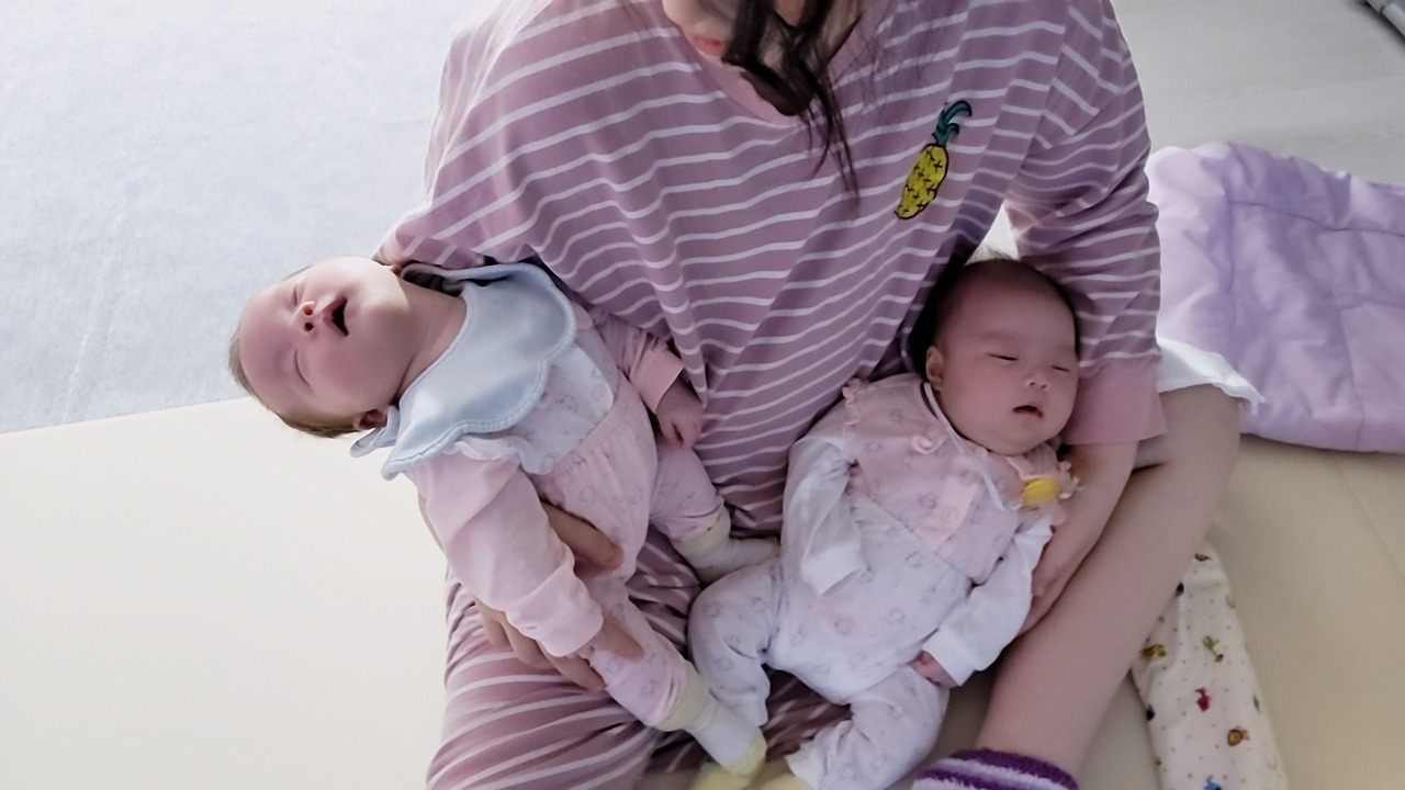 - 쌍둥이는 작게 태어나는 편이라서 빠는 힘이 부족하니 수유 시간도 길어요. 한 아이를 수유하고 트림시켜서 기저귀 갈고 눕히기까지 최소 15분은 걸려요. 이걸 아이마다 하루종일 반복합니다. 수유를 두배로 하면, 기저귀도 두배로 갈죠. 어깨, 손목, 허리, 무릎관절이 골고루 혹사당할 수밖에 없어요. 서로의 울음소리에 반응해서 자던 아이가 깨는 상황도 수시로 발생하죠. 번갈아가면서 울음이 터지니 청각도 포기해야 합니다. 수면의 질? 처참하죠. 저는 조리원에서 돌아오고 생후 150일까지 쪽잠 자는 시간을 다 합쳐도 하루에 세 시간 정도였어요. (남편 육아휴직 X.)