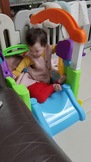 하지만 물티슈 한통 다 뽑고 빨아먹기, 온 집안 촉촉하라고 로션 한통 발라주기, 높은 곳에 기어올라가기, 침에 젖은 촉촉한 손가락으로 콧구멍처럼 생겨서 유혹적인 콘센트 구멍을 쑤시려고 시도하기, 유아 책장에 올라가서 책은 다 뽑아서 던지고 엉덩이가 끼었다고 울부짖기 등 사고를 칠 때는 텔레파시가 통하더라고요.