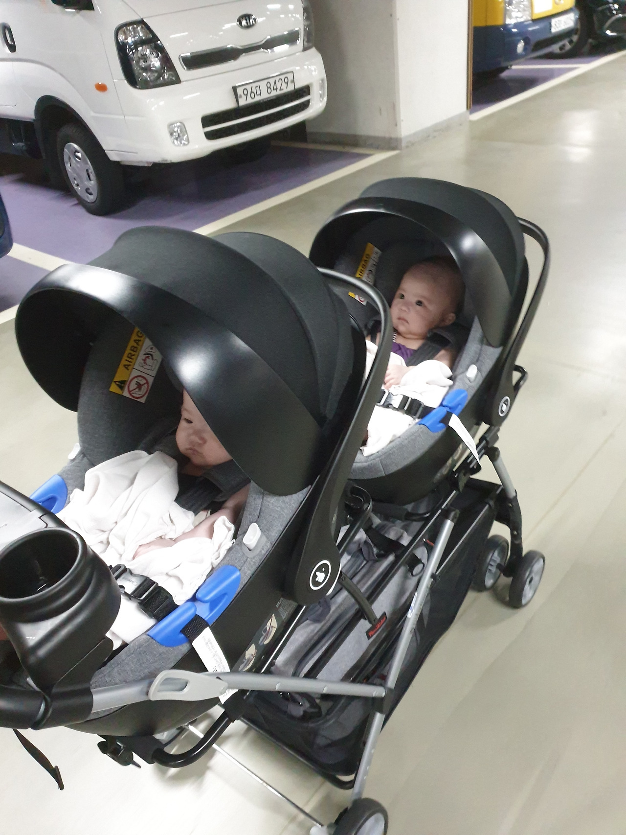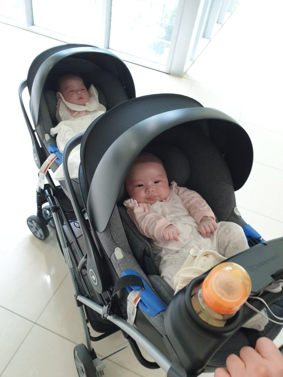 이렇게 외래진료를 가면 쌍둥이에 대한 사람들의 관심을 체감하게 됩니다. '시험관이냐, 아들이냐 딸이냐, 어디가 아프냐.'등등 수많은 질문이 쏟아져요. 부담스럽지만 그래도 예쁘고 안쓰러워서 전하는 마음들임을 알기에 이해하게 되실 거예요. 병원에서 두 아이의 진료와 검사, 대기시간만으로 기본 한나절은 흐릅니다. 사이사이에 아이들의 낮잠과 수유시간이 있어서 타이밍을 잘 맞춰야 해요. 한번 해보시면... 감이 옵니다.