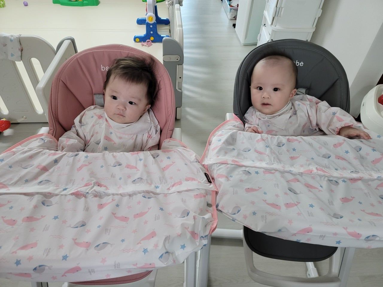 아무리 이란성쌍둥이라지만, 이렇게까지 다를 수 있나?라는 생각을 자주 했어요. 좋아하는 식재료, 식사 속도, 선호하는 이유식의 입자까지 다르더라고요. 그래서 알송이는 얼레벌레 초기 - 중기 - 후기로 넘어가는데 달송이는 돌이 될 때까지 중기를 먹었어요. 그것도 반넘게 푸푸- 뱉고 온몸에 찍어 바르고요. 원체 역류가 심해서 자주 토하던 아이니까, 뭐라도 먹어주는 게 고마워서 최대한 맞춰줬지만 식성이 다른 두 아이에게 각각의 이유식을 준비하는 게 참 까다롭더라고요. 먹성이 다르니 체격도 차이나죠. 당연히 기저귀 사이즈도 달라요. 하나를 사서 둘을 입히고 신기겠다던 저의 원대한 소망은 물거품이 됐어요.