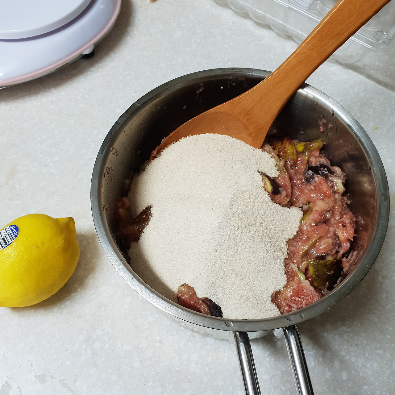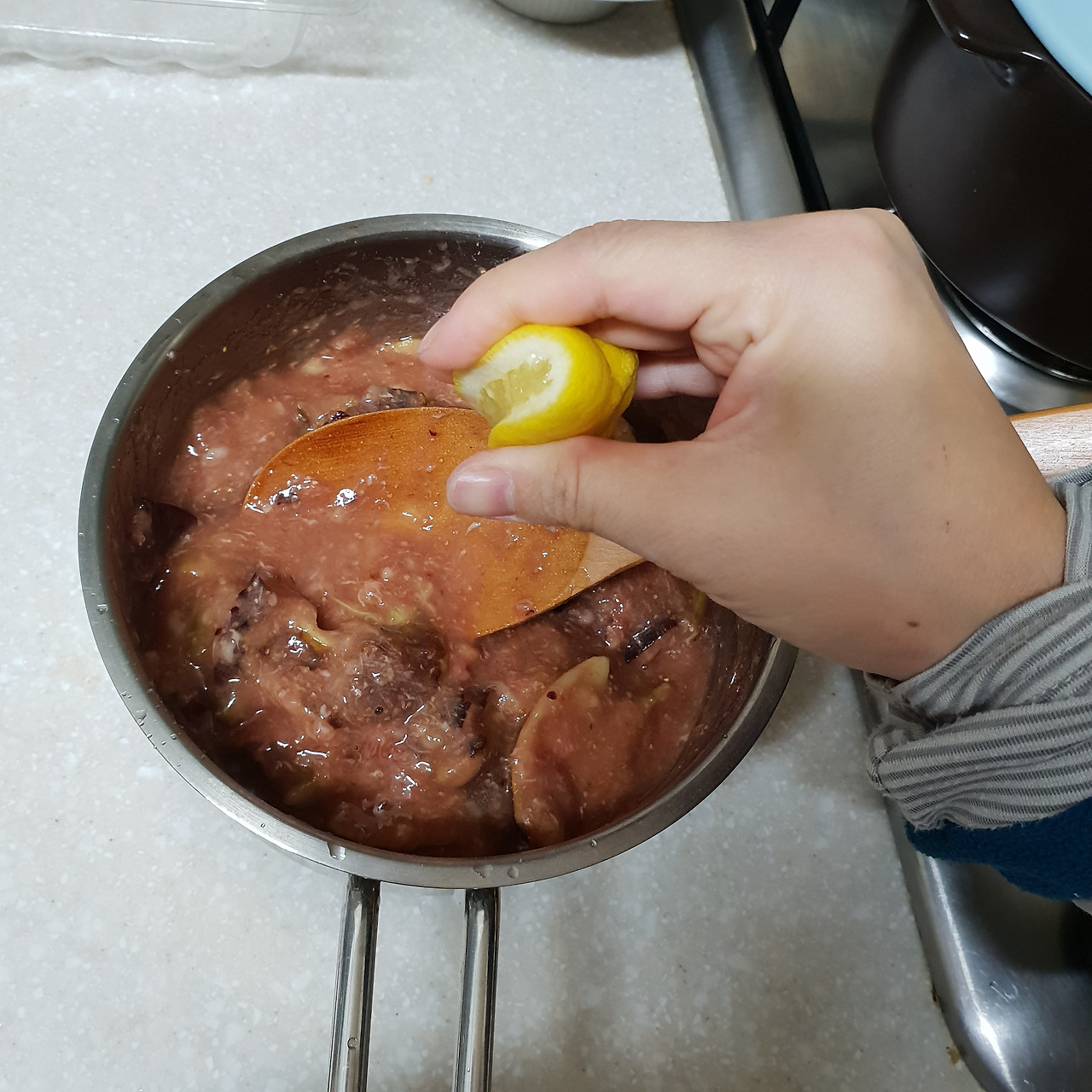 3. 무화과 잼은 색과 보존성을 위하여 레몬즙 2티스푼을 넣어준다.