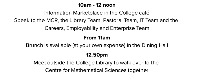 다음날은 토요일이었지만 오전 10시부터 칼리지에서 Postgraduate Welcome & Induction 행사가 열렸다. 쉽게 말하면 석박사 신입생 OT다.