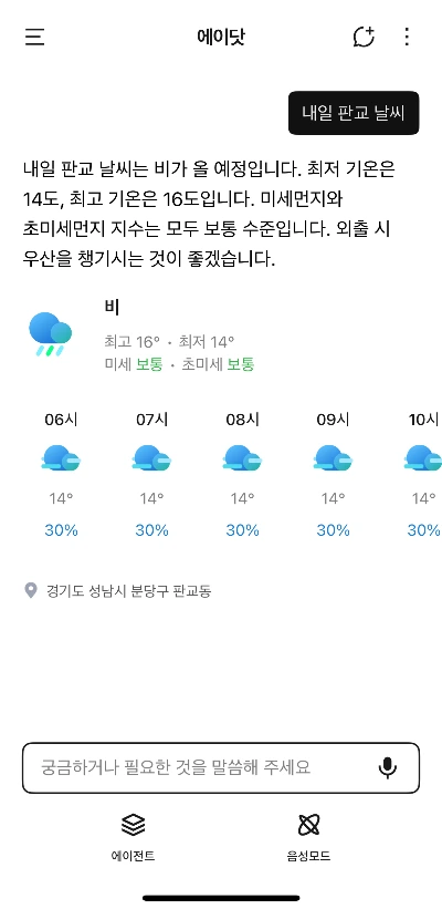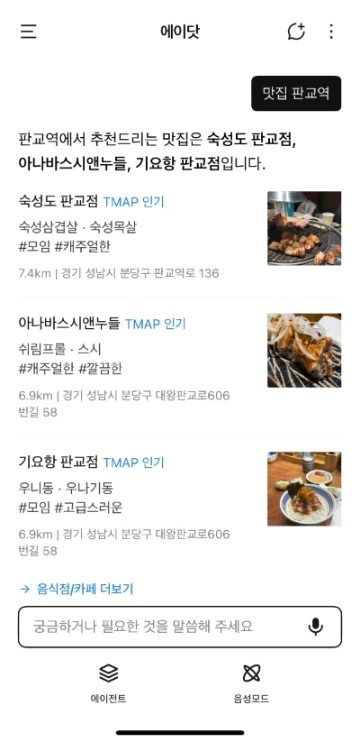 에이닷은 검색한 정보 종류에 적합한 GUI를 제공한다.