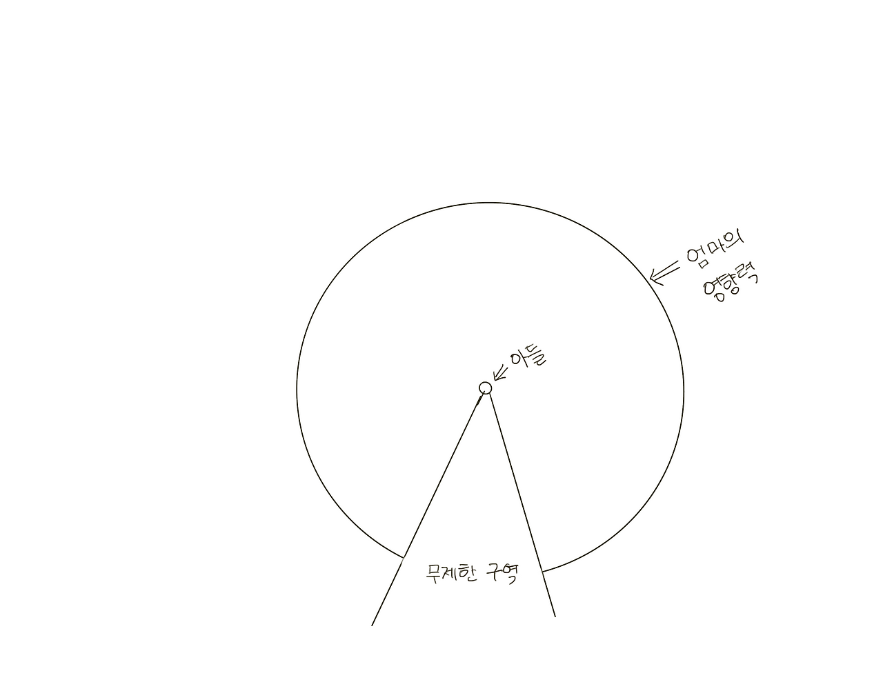 아들이 그린 그림에는 엄마의 영향력이 전혀 없는 무제한 구역이 있다.