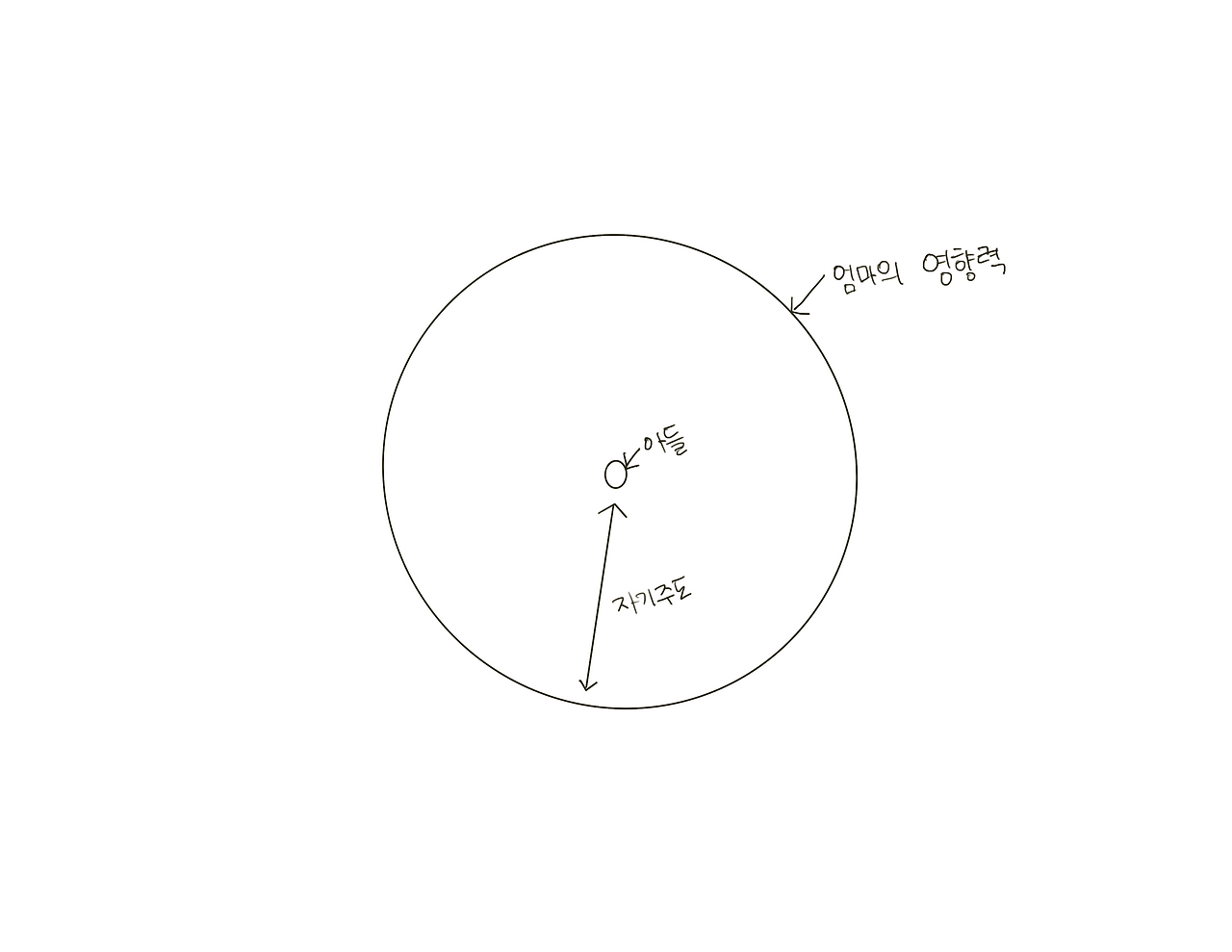 아들의 생각은 다를 수도 있으니 일단 아들이 느끼는 엄마의 영향력의 선을 체크하려고 했다.