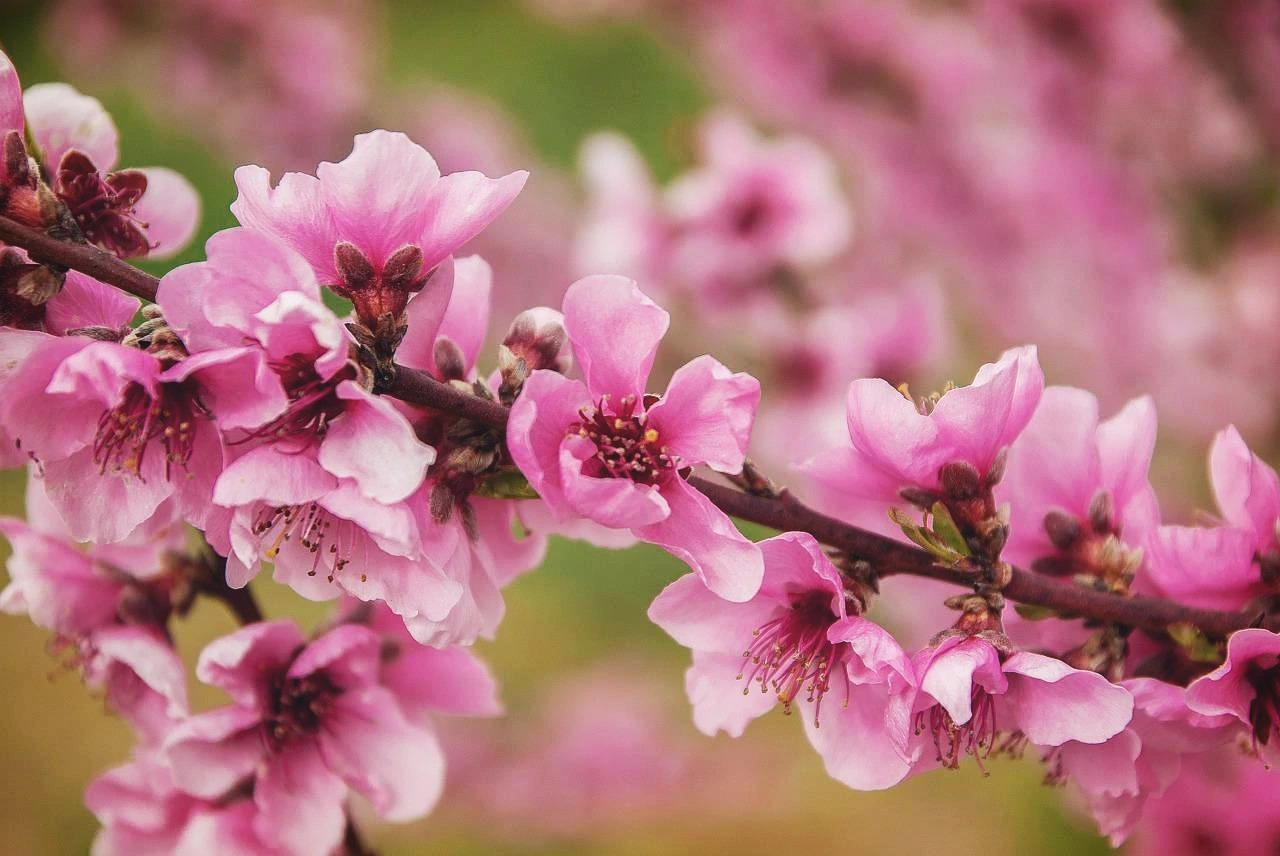 '복숭아꽃'이라고도 불리는 이 꽃은 4월 중순부터 하순까지만 개화하며, 이후에는 복숭아를 달고 1~2개월을 키워낸다. 매화나 살구는 커봤자 손가락 두 마디를 넘지 않으니 금세 자라지만, 복숭아는 그 크기부터가 보통 주먹만 하니 오래 걸리는 것이 당연지사다. 그렇게 짧은 털이 밀생(密生)하게 나 있는 복숭아가 탐스럽게 익고 나면, 바람에 나부끼기 시작한다.