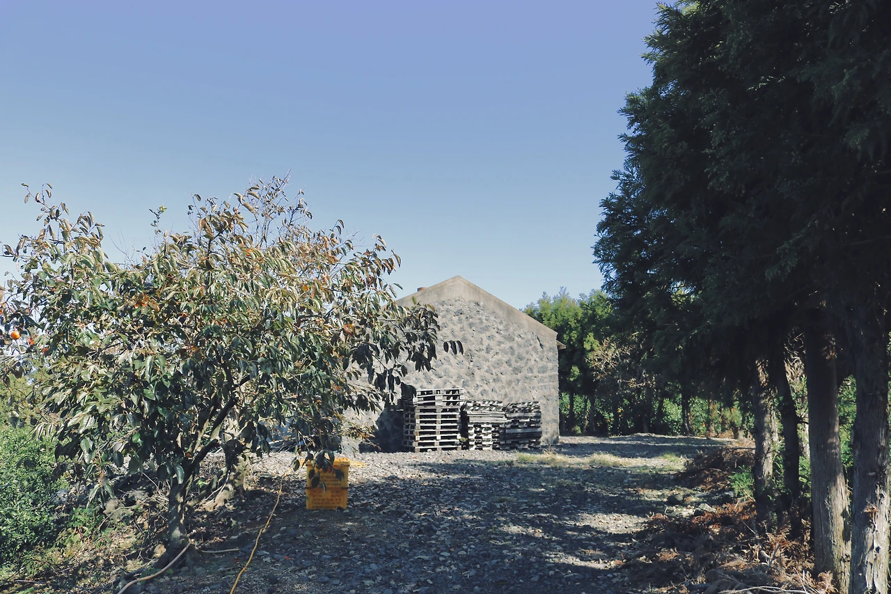 늦은 밤 도착한 제주의 게스트 하우스에서 하룻밤을 묶고, 이튿날 아침 일찍 귤밭으로 향했다. 구름 한 점 없던 아침은 선선한 바람이 사방에서 들이쳤고 햇빛은 봄날의 어느 순간을 그대로 베껴 놓은 듯이 따뜻하기만 했다. 버스 타기와 걷기를 두 번 가량 반복하다 마지막은 주인 모를 귤밭 사이에 만들어져 있던 낮은 담장의 길을 걸으며 최종 목적지에 닿았다.