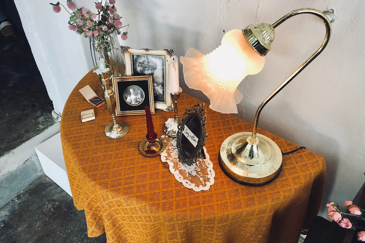 회색의 벽과 미의 여신이라 불리는 누군가의 치맛자락처럼 늘어뜨려진 하얀 천, 짙은 갈색의 의자와 세트를 이루는 테이블, 동양화만이 뽐내는 여백의 미를 노골적으로 차용한 서양적인 인테리어 속 수많은 빈 공간들.