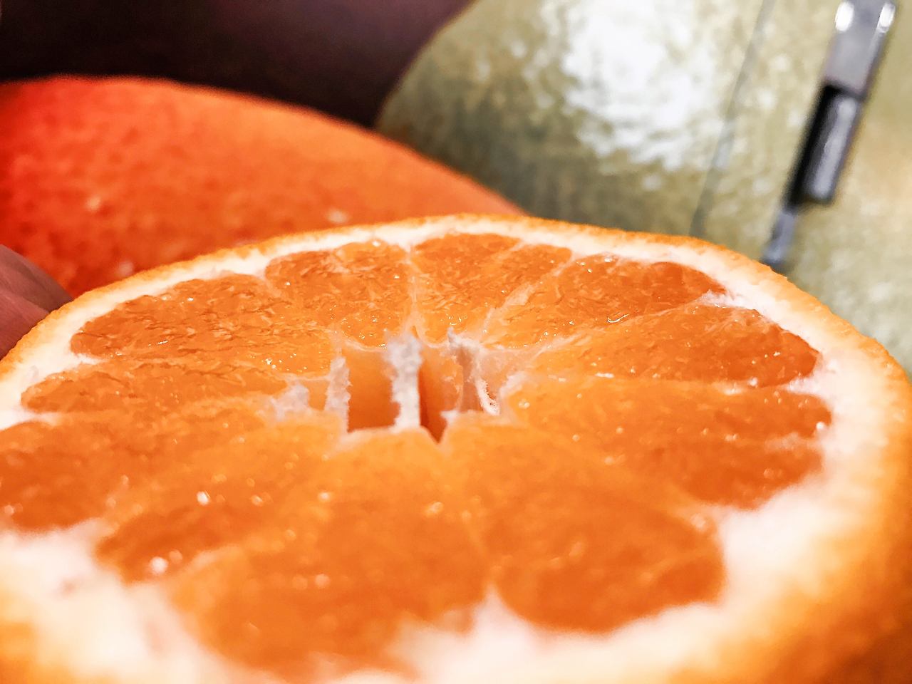 가운데의 원을 지키려는 듯 조각조각 둘러 모인 과육들이 촘촘하다. 살을 살짝만 눌러도 과즙이 튀어 올 것 같았다. 한 조각을 뜯어 내어 입에 넣었을 때, 귤과는 다르게 입안 가득히 씹히는 한라봉의 향과 적당한 산과 과즙, 채 하나를 씹기도 전에 하나를 더 넣었다. 손과 입에 한라봉의 향이 가득했다.