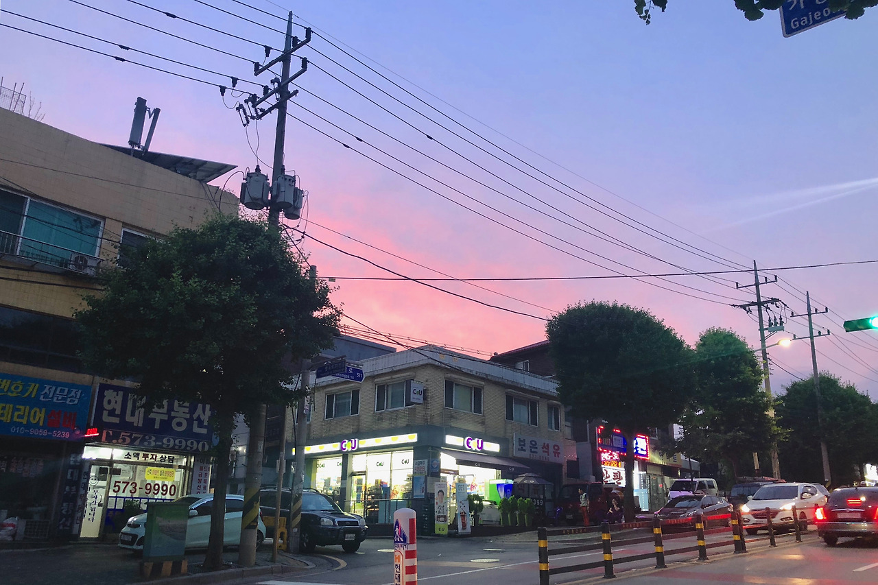 짧은 낮과 긴 밤을 가진 겨울을 좋아하는 내가 싫어하는 여름 안에서 좋아하는 단 한 가지는, 길어진 낮으로 인해 늦은 퇴근 시간에도 노을을 여유롭게 볼 수 있다는 점이다. 매일 퇴근 무렵의 하늘을 보고 있노 라면, 매일 똑같은 사람을 만나지만 천 가지의 표정을 하나하나 세어가며 기분을 헤아리는 일과 같은 기대감과 궁금증에 사로잡힌다.