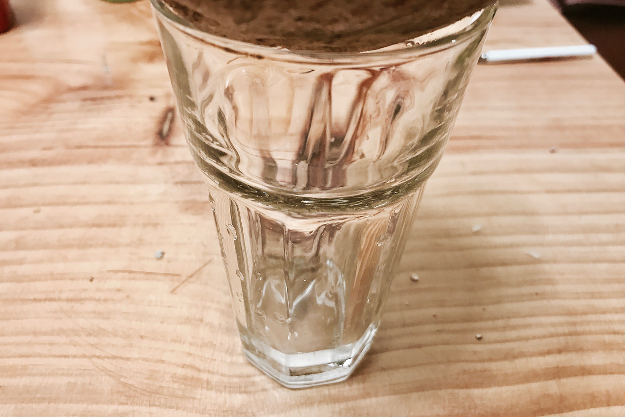 그 포인트가 단단한 다른 부위와 달리 약하다. 그곳을 와인 오프너(스크루 형태)를 이용하면 쉽게 구멍을 낼 수 있지만, 준비가 되어 있지 않아 '젓가락'을 이용하여 과감하게 내리찍었다.