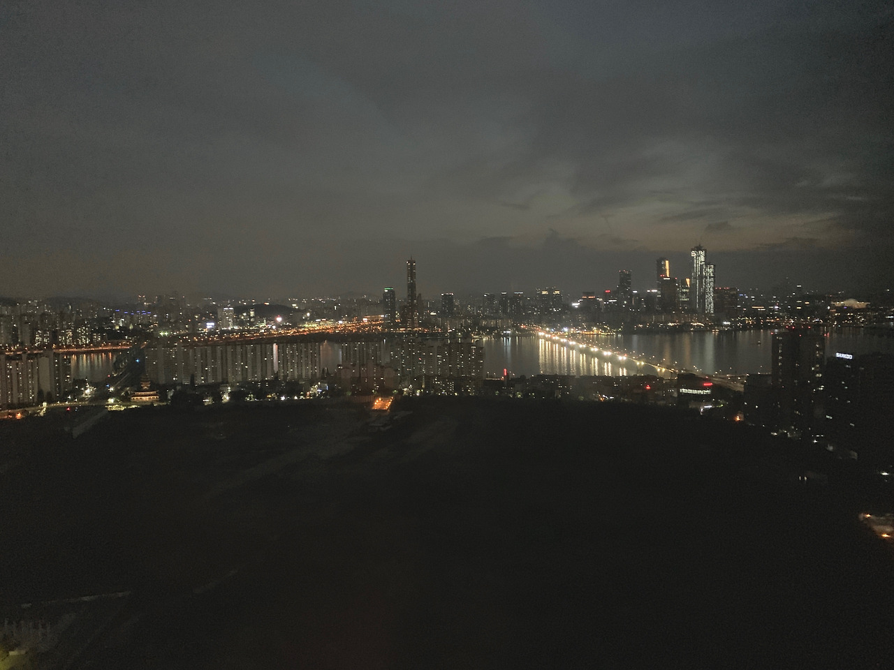 장마철의 비에 젖은 야경이 창가에 비스름한 빗줄기를 새기는 밤. 37층에서 보이는 풍경이었다. 사람보다 몇 배나 큰 자동차들은 빛을 뿜는 하나의 점이 되어 다리를 줄지어 건너고, 사람을 수만, 수 십만 명을 수용할 수 있는 건물은 손가락의 길이보다도 짧게 마디의 간격보다는 좁게 다닥 다닥 붙은 채, 땅을 수놓았다. 사람이 만들었으나 사람보다 거대한 것들을 내려다 볼 수 있는 유일한 곳 공중. 연인과 휴가를 맞이해 방문한 고층의 호텔이 안겨준 세상은 그러했다.