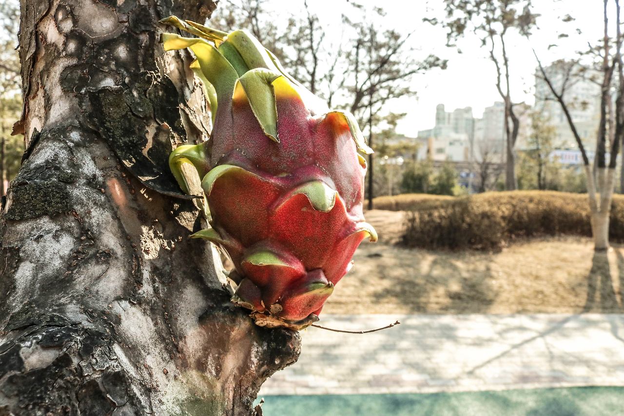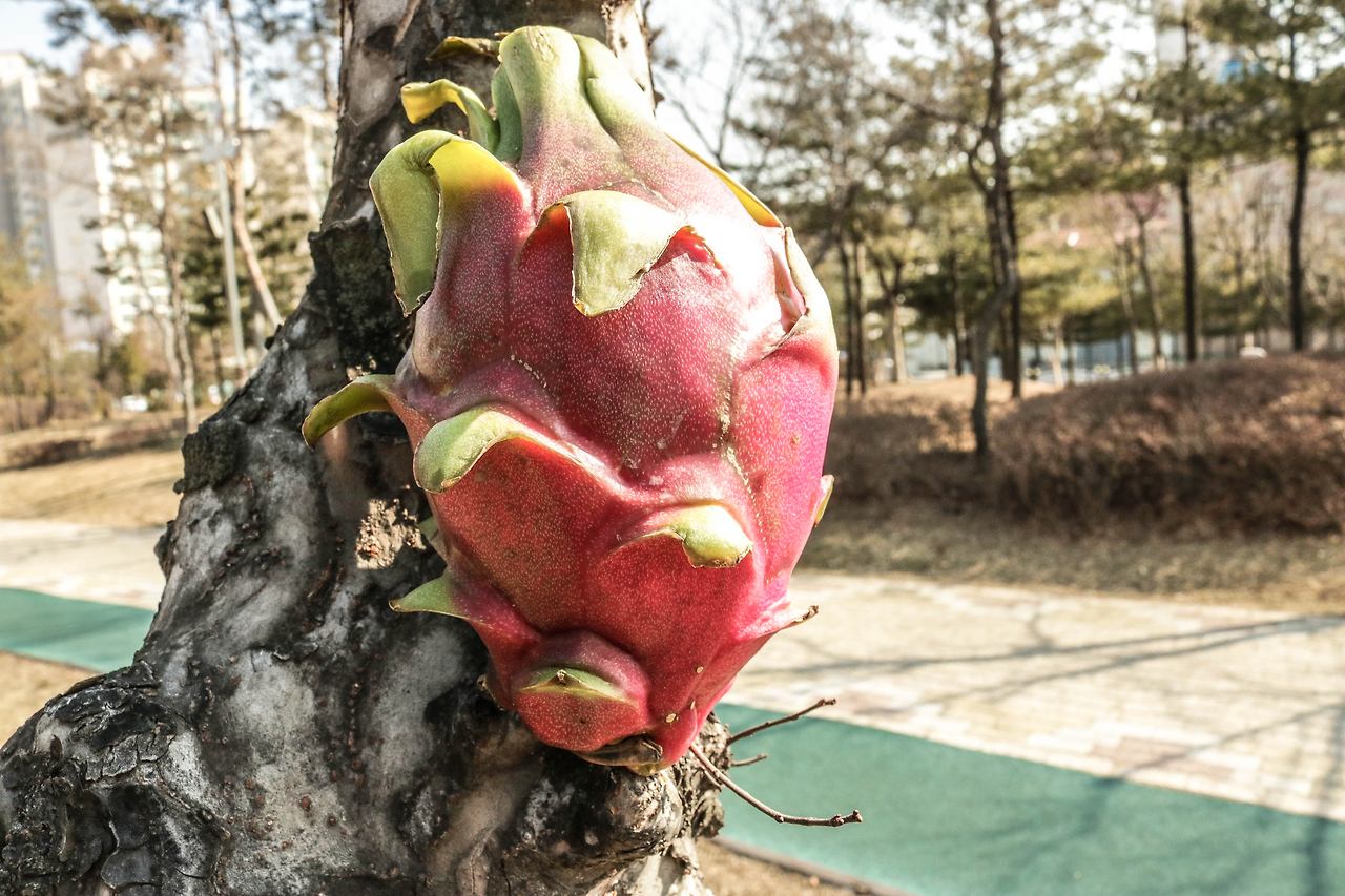 중앙아메리카의 열대우림이 원산지인 용과 또한 열대과일이다. 36번째 칼럼 백향과 편에서 한번 언급했듯이 온난화로 인한 지구의 평년기온이 높아짐에 따라 우리나라도 예외 없이 영향을 받는다고 하였는데, 그 영향중 하나로 이 용과도 포함된다.
