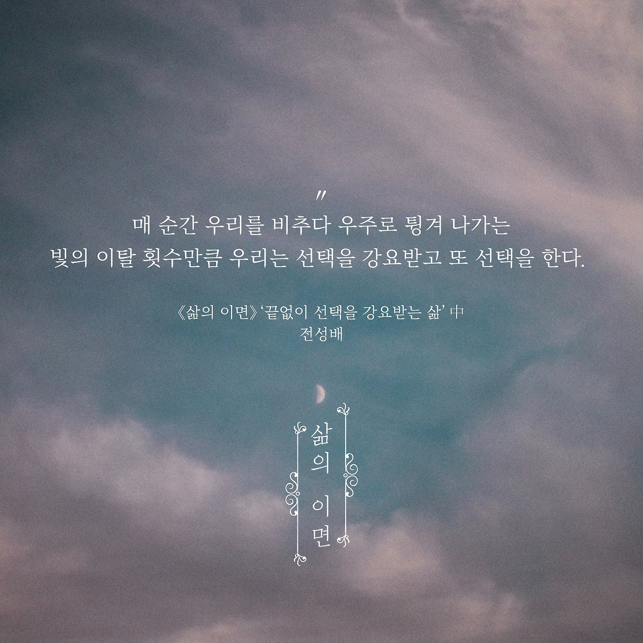 답은 음.. 아닙니다. 이번에 완성된 수필집《삶의 이면》은 실물로 출간될 책이 아닌 비실물의 PDF 파일 형식으로 제공되는 '전자책'입니다. 태블릿과 휴대폰, PC에 이르기까지 기기와 장소에 구애 없이 읽을 수 있는. 그리고 따로 제의를 받아 만들게 된 것이 아니라 이전까지 제가 독자적으로 운영해오던 '두 번째 밤에 만나는 종이 없는 수필' <두밤수>의 개념에서 확장된 <완성 형태의 수필집>입니다. 즉, 시중에 출간되는 모든 책이 그러하듯 제 수필집 《삶의 이면》또한 실물이 아닐 뿐이지, 그것들과 같은 결을 가졌다고 해도 무방합니다. 작성부터 윤문, 디자인까지 모두 혼자 했다는 것에서는 차이가 있겠네요.