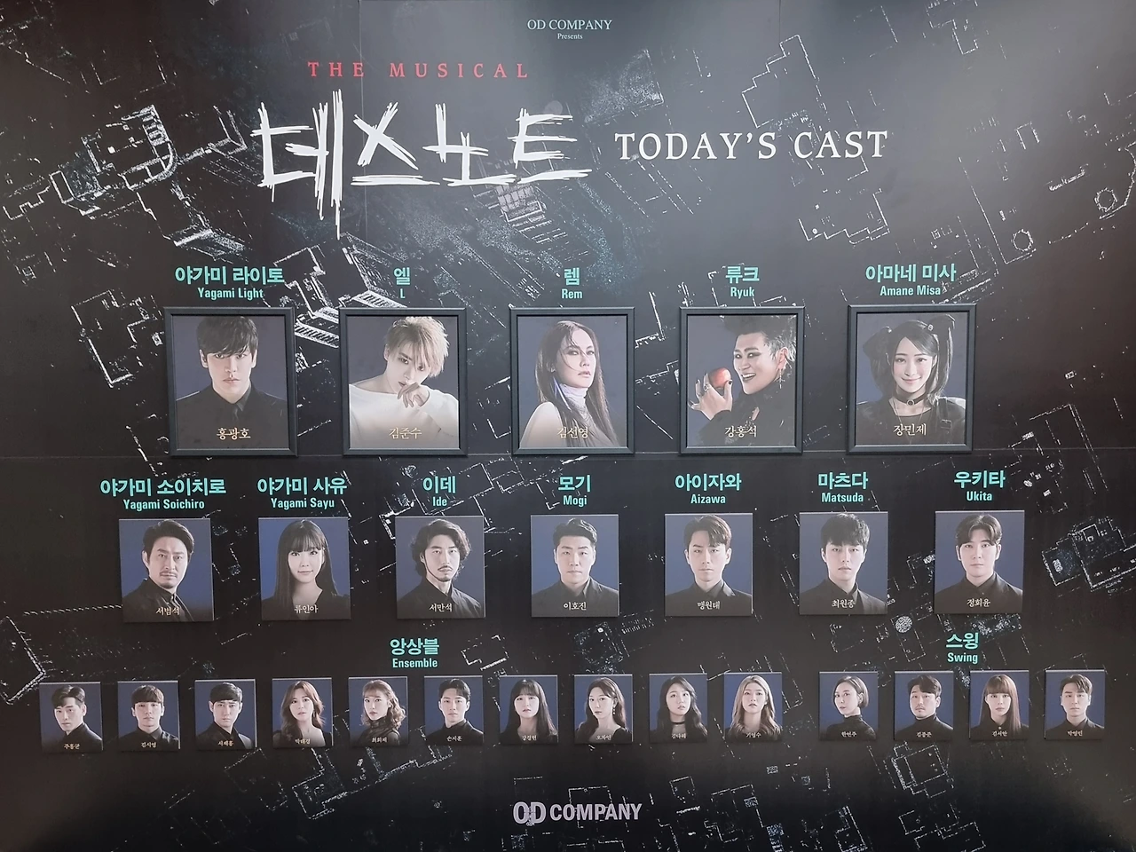 배우들이 등장하고, 노래를 시작하자 마스크 안의 내 입이 자꾸 벌어졌다. 기대했던 배우의 노래는 말할 것도 없고, 모든 출연자분들이 피켓팅에 쏟은 내 열정과 돈, 거기에서 발생한 스트레스까지 보상해 주는 기분이었다. 박수를 정말 열심히 쳤고, 소리도 지르고 싶었다. 노래가 끝날 때마다 '와' 입모양과 함께 나오는 내 숨결로 마스크 속이 따뜻했다. 이 공연 자체도 내 마음속에서 급부상했지만, 이 공연에서 다시 보게 된 배우도 있는데 바로 김준수 배우이다. 이미 워낙 유명하고 인기도 많지만, 예전에 본 공연에서 내 취향은 아닌 것 같다는 생각을 했었다. 하지만 데스노트 속에서 김준수 배우의 폭발적인 연기, 노래에 소름이 돋았고 이 캐스팅으로 결정한 건 정말 잘 한 행동이었다고 스스로를 칭찬했다. 다른 뮤지컬이 올라올 때, 다시 만나고 싶다! 강홍석, 김선영 배우의 연기도 정말 인상 깊었다. 일반적이지 않은 의상, 분장을 했음에도 내 기준에서는 이질감이 없었고 특히 김선영 배우가 연기한 렘의 넘버는 창백한 분장과는 반대로 따스했다. 여동생과 미사미사의 맑은 목소리도, 아버지의 곧은 신념이 느껴지는 목소리까지도 두고두고 다시 듣고 싶다. 최근에 모든 넘버가 다 좋았던 뮤지컬은 없었던 것 같은데, 데스노트를 본 것만으로 하루가 뿌듯한 느낌이다. 재미있을까? 고민하는 분들에게 꼭 보라고 말하고 싶다.