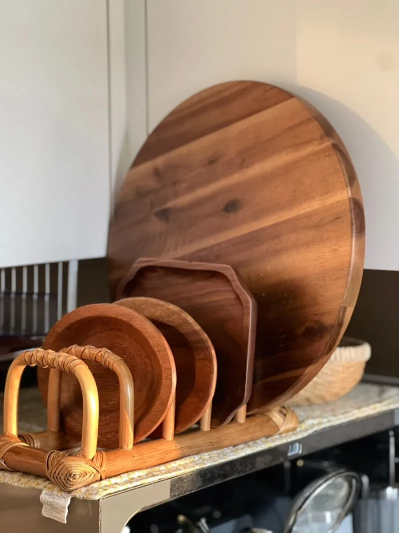 눈앞의 그릇 자리들을 바꿔놓고 있어요. 아끼지 않고 그릇장의 그릇들도 옮겨두고, 캠핑짐 속에 있던 나무 그릇들도요.