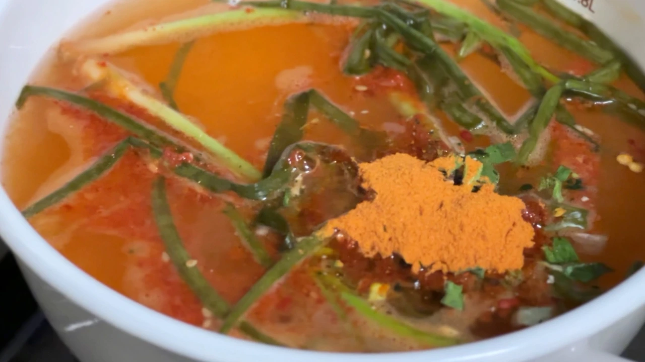 오늘은 김장김치대신 푹 잘 익은 파김치를 넣고 끓여요. 모든 국물이나 찌개에 파는 늘 멋지게 잘 어울려요.