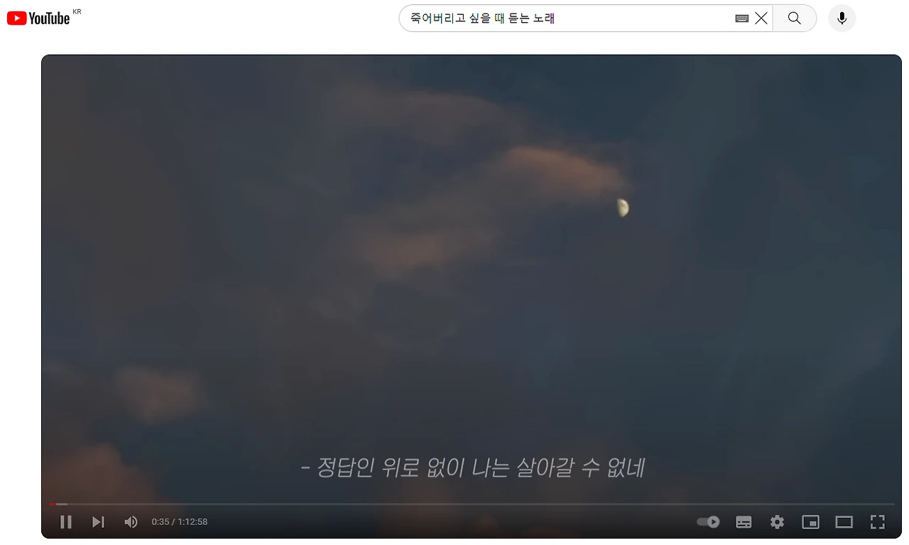 유튜브에 죽어버리고 싶을 때 듣는 노래